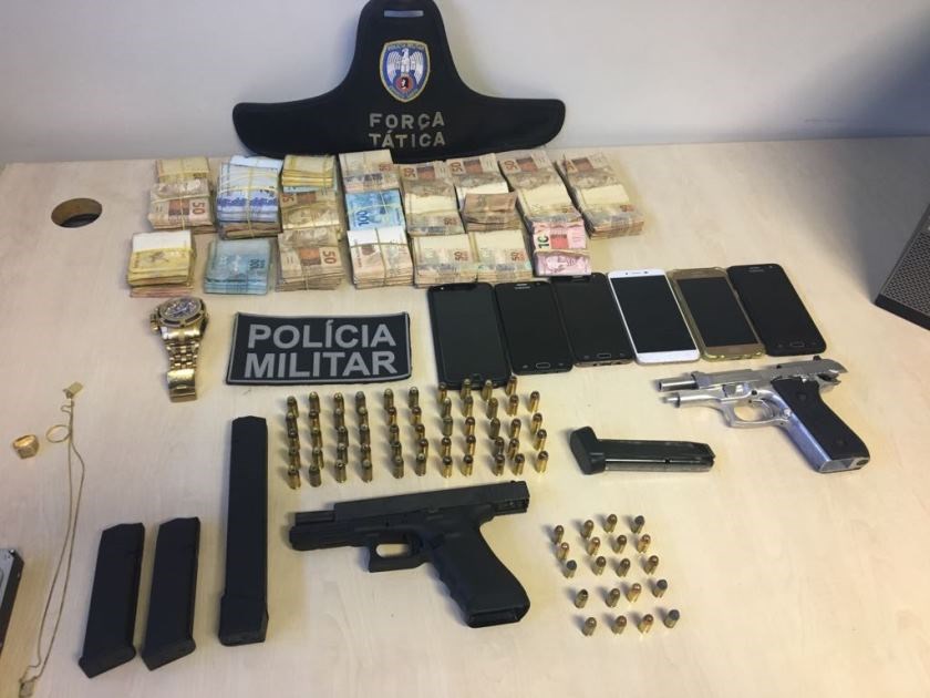 A. S. R., 29 anos, H. N. S., 25 anos, T. F. S., 30 anos, e C. P. B., 30 anos, foram presos em flagrante pelas equipes. Com eles foram apreendidos uma pistola Glock calibre .40 com três carregadores do mesmo calibre – um deles com capacidade para 30 tiros; uma pistola calibre 380 com um carregador; 55 munições calibre .40; 20 munições calibre 380; os dois automóveis utilizados no roubo, além do dinheiro recuperado.