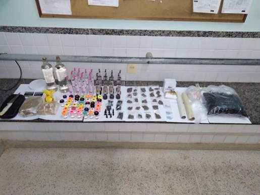 Durante a abordagem foi verificado um outro veículo suspeito. Duas pessoas se encontravam no veículo e nada de ilícito foi encontrado com eles, porém ao verificar no interior do carro foram localizadas duas mochilas infantis contendo 19 tabletes de maconha de aproximadamente um quilo cada uma. Ato contínuo da ação, os militares prosseguiram em uma residência no município de Cariacica onde localizaram um tablete grande de crack, dois tabletes grandes médios do mesmo produto, duas porções grandes de cocaína, duas garrafas de uma substância transparente aparentando ser lança perfume, 62 frascos com a mesma substância encontrada nas garrafas, 32 pinos de cocaína, 24 porções maconha, 25 comprimidos de ecstasy, uma balança de precisão em perfeito estado, materiais para embalo de entorpecentes e uma faca com resquícios de material entorpecente. Diante dos fatos os quatro suspeitos foram detidos.