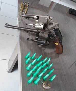 Na ação duas armas de fogo; 30 pinos de cocaína; seis pedras de crack; uma bucha de maconha; um aparelho celular e um notebook foram apreendidos, além de 10 pessoas detidas.