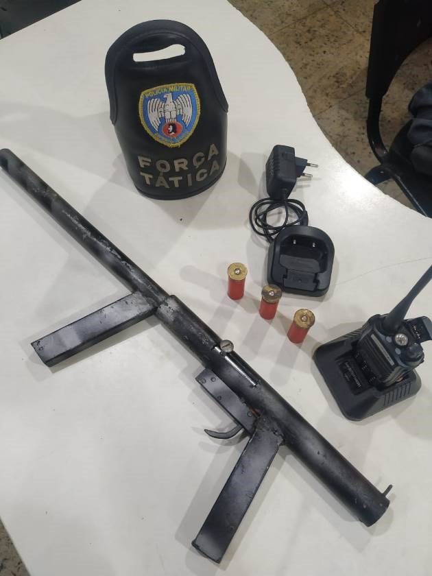 Na noite de sábado (16), durante patrulhamento motorizado nos arredores do bairro do Romão, militares da Força Tática avistaram um indivíduo em uma escadaria com uma arma longa em mãos, e assim que o cidadão avistou os militares empreendeu fuga, porém logo foi alcançado. Foi constatado que o homem portava uma espingarda calibre 12 de fabricação caseira contendo uma munição e em perfeitas condições de uso.