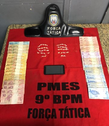 No Bairro Zumbi, policiais militares visualizaram indivíduos que ao perceberem a presença da guarnição tentaram fugir, sendo estes acompanhados e abordados. Um menor (16) estava com 28 pedras de crack na boca e R$ 310,00 (trezentos e dez reais) em espécie no bolso. Já o outro indivíduo dispensou oito pedras de crack antes de ser abordado. O menor abordado, no mês de janeiro efetuou disparo de arma de fogo contra a equipe de Serviço Reservado. Os dois abordados foram detidos.