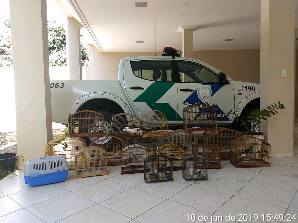 Nesta quinta-feira (10) uma equipe da 1ª Companhia do Batalhão da Polícia Militar Ambiental (BPMA) realizou a apreensão de 17 pássaros silvestres mantidos em cativeiro de forma irregular no município de Itaguaçu.