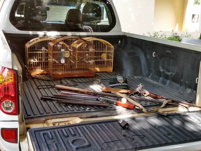 Na manhã desta terça (14), o Batalhão de Polícia Militar Ambiental (BPMA) realizou a apreensão de duas armas de fogo e três pássaros da fauna silvestre brasileira na zona rural do município de Itarana.