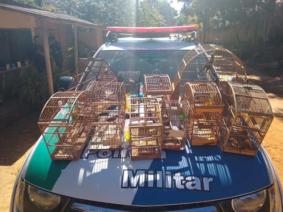 Nesta quarta-feira (26), uma equipe do Batalhão de Polícia Militar Ambiental (BPMA) de Guaçuí, apreendeu diversos pássaros da fauna silvestre brasileira na localidade de Terra Corrida, interior do município de Iúna. Os pássaros eram mantidos em cativeiro de forma ilegal em condições precárias, desfavoráveis à sobrevivência.
