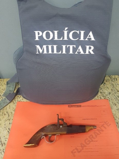 Na localidade de Posto Dantas, militares receberam denúncia de que dois homens em uma motocicleta de cor escura estariam tentando arrombar um comércio. No local, os policiais conseguiram abordar os suspeitos, e com um deles foi localizada uma arma de fogo do tipo garrucha.
