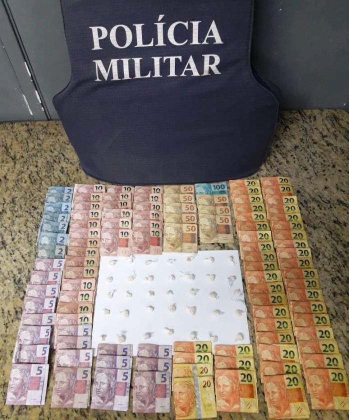 Em Castelo, durante patrulhamento no bairro Niterói, os militares prenderam um homem de 21 anos que estava em posse de 35 pedras de crack e R$ 1.764,00 em espécie.