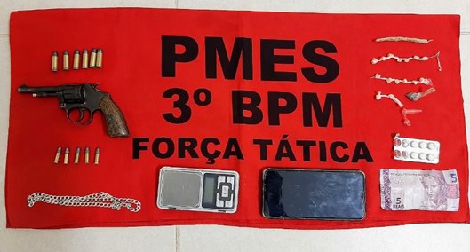 Na abordagem aos adolescentes, ambos de 17 anos, os militares encontraram 15 pedras de crack, já fracionadas para serem comercializadas, uma bucha de maconha, uma balança eletrônica de precisão, um revólver calibre 22 mm, municiado com cinco munições, sendo ainda encontrado mais seis munições de calibre 32.