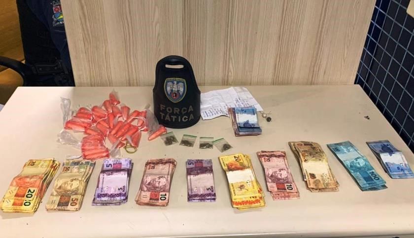 Ao revista-lo os policiais encontraram as drogas que estavam sendo comercializadas pelos dois na região, além de grande quantidade de dinheiro em espécie que estava escondido em uma residência próxima onde eles habitavam. Os suspeitos confessaram ser proveniente do comércio das substâncias.