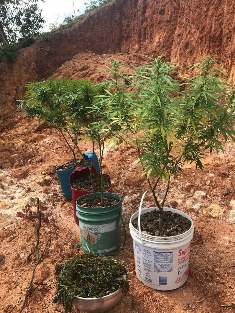 Atrás do imóvel havia quatro plantas desta droga e, dentro da casa, foi encontrada ainda uma bacia grande, com enorme quantidade de folhas de maconha secas prontas para prensa e embalagem.