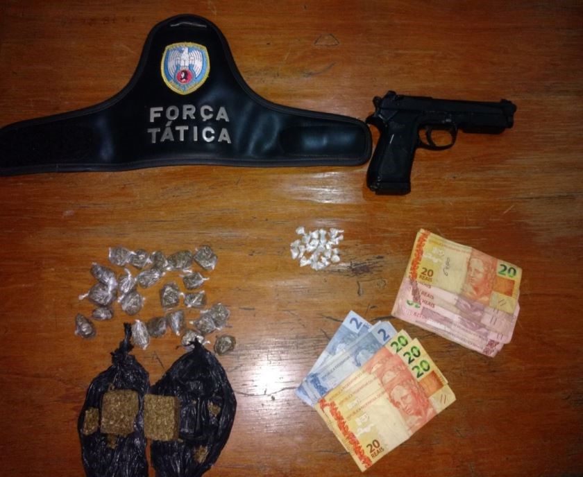 Na noite de sábado (21), policiais militares da Força Tática do 13º Batalhão prenderam um homem com 23 pedras de crack, 25 buchas de maconha e um simulacro de arma de fogo em São Mateus.