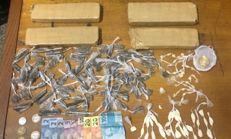 No total, foram apreendidos R$ 170,50 em espécie, 94 buchas de maconha; quatro tabletes da mesma droga, 42 papelotes de cocaína, 44 pedras de crack e uma pedra em tamanho maior também de crack.