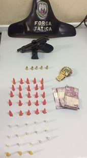 Já no bairro Planalto Serrano, no município de Serra, durante o patrulhamento pela Avenida Colatina em apoio ao Serviço Reservado, os policiais avistaram dois suspeitos. Eles fugiram ao notarem a presença da guarnição, mas um deles foi alcançado e detido, sendo identificado como R.H.L., de 18 anos. Com ele foram encontrados 43 pinos de cocaína e no trajeto utilizado na fuga, os policiais apreenderam uma pistola calibre 380, um carregador, cinco munições do mesmo calibre e R$ 15,00 em espécie.