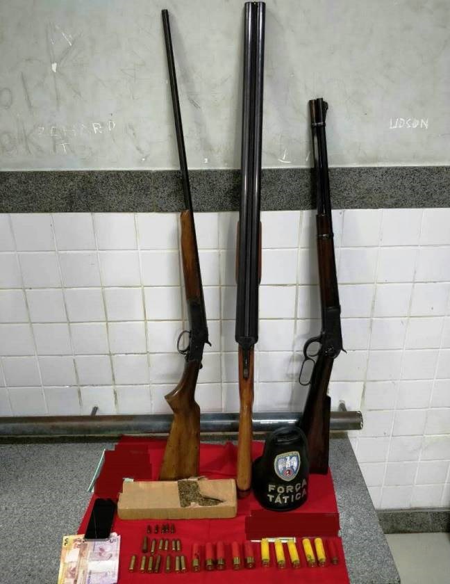 Diante da informação, os policiais prosseguiram à residência dele e localizaram três armas de fogo em perfeitas condições de uso, sendo três espingardas de calibres 12, 28 e 44. Os militares também localizaram diversas munições de diferentes calibres e ferramentas que, segundo o suspeito, seriam para realizar manutenção das armas.