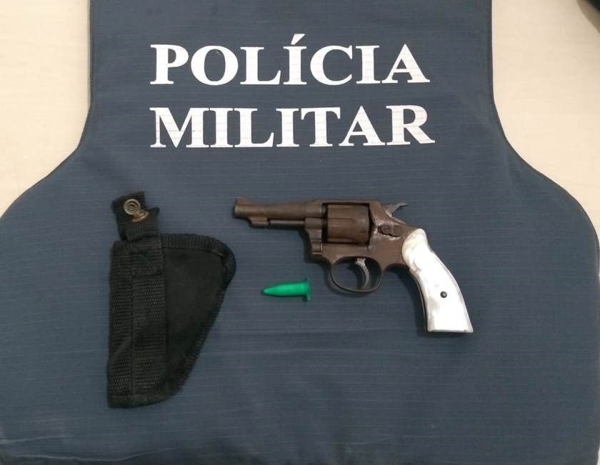 Após receber informações sobre um cidadão que estaria armado próximo a praça em Guriri, os policiais militares foram ao local informado onde abordaram W.M.C., de 16 anos, e durante buscas pessoais foi encontrado em seu poder um revólver calibre 32, sem munição no coldre, além de um pino plástico contendo uma pequena quantidade de cocaína.