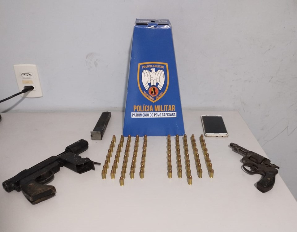 Em outra ação, enquanto realizavam o patrulhamento no bairro Jardim Limoeiro, os militares avistaram vários indivíduos correndo ao perceberem a aproximação da viatura. Durante a fuga, os suspeitos abandonaram uma mochila, na qual foram encontradas uma metralhadora calibre 380 e um revólver calibre 32, juntamente com 82 munições.