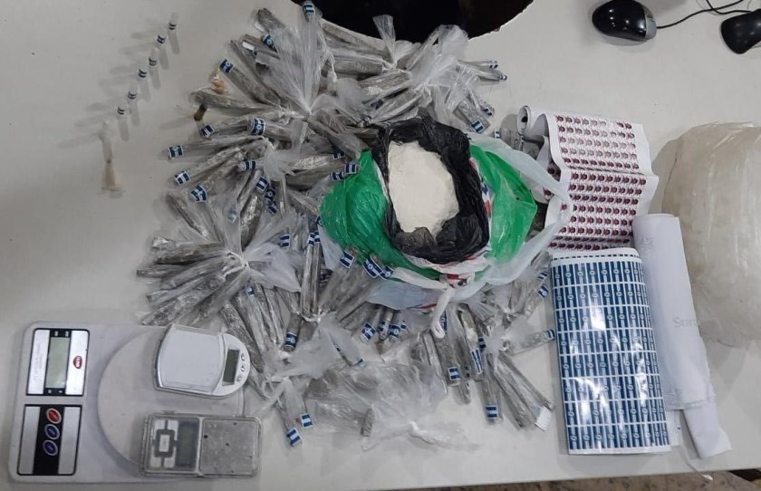 O criminoso, um homem de 25 anos, portava 13 pinos de cocaína, 10 pedras de crack, uma bucha de haxixe, além de uma sacola com certa quantidade de cocaína, um carregador de pistola calibre 9mm, 38 munições calibre 9mm, uma munição calibre 380, uma balança de precisão, três rádios comunicadores e uma base para rádio comunicador.