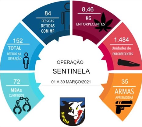 No total, desde o início da Operação Sentinela (em abril de 2020) foram detidos 207 homicidas e 224 traficantes, o que, de acordo com o coronel Douglas Caus, é o resultado de ações qualificadas, pontuais, que estão retirando do convívio social pessoas de alta periculosidade.