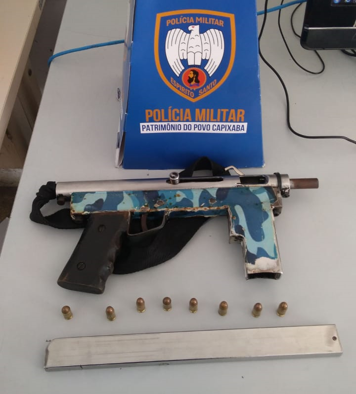 O armamento foi apreendido e encaminhado ao plantão policial local para o registro da ocorrência.