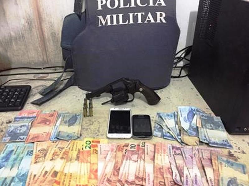 Durante as buscas foram encontrados com os criminosos WDM, 23 anos e LSO, 20 anos, o revólver calibre .38, Taurus, com seis munições do mesmo calibre e R$ 984,00 em dinheiro que foi roubado no estabelecimento, além de dois celulares.