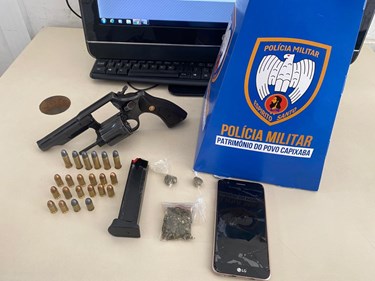 Em Vila Velha foram apreendidos 11 pinos de cocaína, dez buchas de maconha, 90 pedras de crack, R$ 25,00 em espécie, uma pistola calibre 765 e 52 munições.