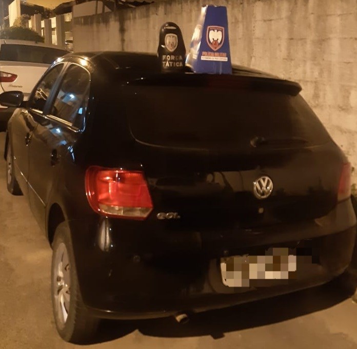 Em uma das abordagens, os policiais constataram que um veículo VW/Gol de cor preta possuía restrição de furto ou roubo. O responsável pelo carro foi detido e encaminhado ao departamento policial do município para o registro da ocorrência.