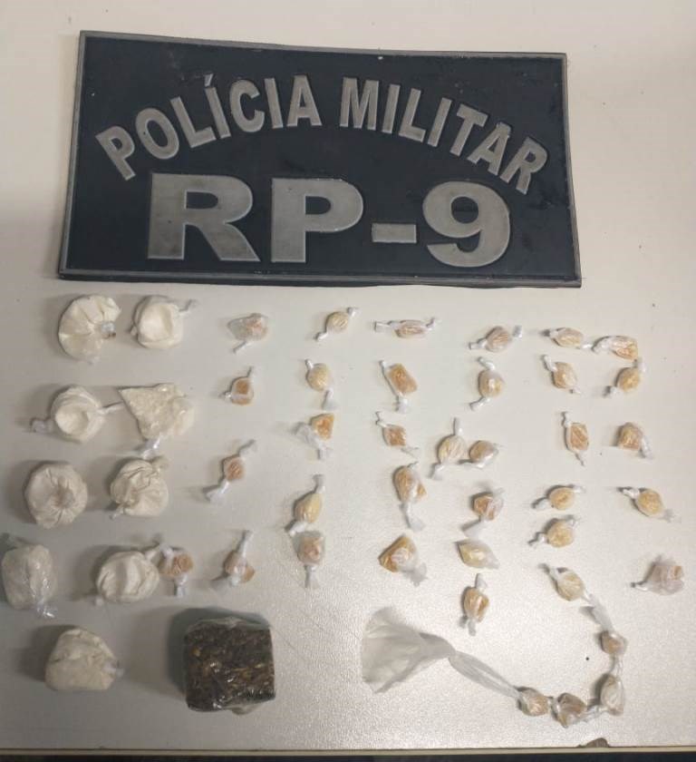 No Bairro Valão, militares realizaram a abordagem a um suspeito e encontraram com ele 37 pedras de crack, uma bucha de maconha e nove papelotes de cocaína.