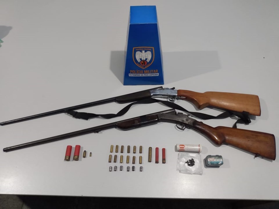 Durante a noite, por volta das 19h, uma guarnição prosseguiu ao bairro Barro Branco, zona rural de Guarapari, para verificar a denúncia que um suspeito estaria em posse de duas armas de fogo. Os militares conseguiram encontrar as armas, mas nenhum suspeito foi localizado. Foram apreendidas uma espingarda calibre 36, uma espingarda calibre 32, duas munições intactas calibre 12, três cartuchos calibre 36, 12 estojos calibre 38, uma munição intacta calibre .40, uma munição calibre 22 e material para recarga de cartucho.