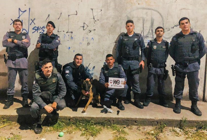 Os policiais estavam em acompanhamento a um suspeito de cometer homicídio no bairro Divino Espírito Santo. Os militares visualizaram o homem dentro de um terreno baldio e suspeitaram que ele pudesse ter dispensado a arma do crime no local, por isso, após a fuga do suspeito, que não foi alcançado, foi acionado o cão de faro para buscas.