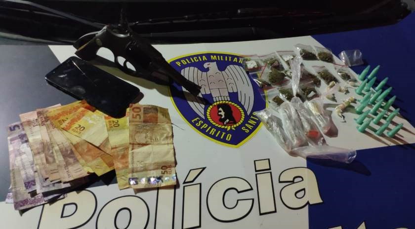 Em Planalto Serrano, os militares e o K9 do batalhão durante patrulhamento avistaram três indivíduos em atitude suspeita. Ao perceberem a aproximação das viaturas os indivíduos empreenderam fuga, porém foram não obtiveram êxito. Durante a busca pessoal foi encontrado um Revólver calibre 38, numeração suprimida, três buchas de maconha, um pino de cocaína e uma quantia em espécie. Os militares refizeram o caminho percorrido pelos acusados durante a tentativa de fuga, sendo encontrado pela cadela Aretha uma sacola contendo 16 pinos de cocaína, 10 pedras de crack e 16 buchas de maconha. Durante consulta ao sistema, foi constatado um mandado de busca e apreensão em desfavor de um dos indivíduos. Os materiais apreendidos e os indivíduos foram encaminhados a 3ª Delegacia Regional de Serra.