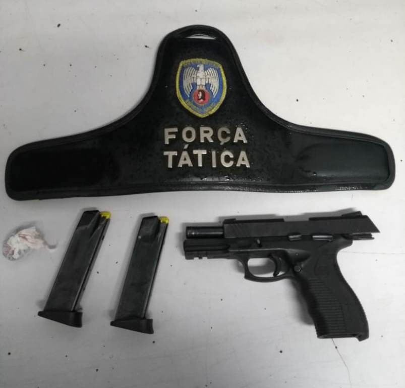 Já no bairro Soteco, a equipe da Força Tática recebeu uma denúncia de que um homem suspeito de ter envolvimento com o tráfico de drogas estaria portando uma arma de fogo. Na abordagem a J.S.P.N., de 22 anos, foi localizada uma pistola calibre 9mm com dois carregadores sem munições.
