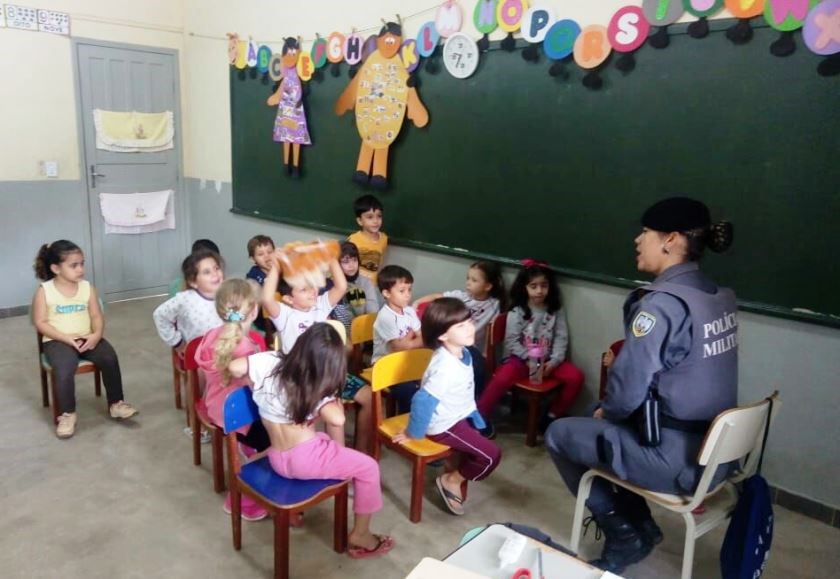 Os militares foram à escola e interagiram com as crianças, que fascinadas não perderam tempo para expressar sua admiração por aquele profissional. O desejo das crianças era que os policiais fossem todos os dias na sua escola.