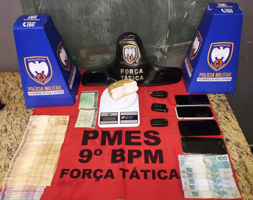 Após denúncias de tráfico, policiais militares abordaram um veículo Prisma, no Centro. Durante averiguação, foi verificado que o número do motor estava ilegível e os dados impressos no documento não condizia com o proprietário real da placa e com o padrão de impressão adotado pelo Detran-ES.
