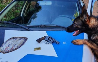Na data de hoje, a equipe K9 deslocou até a localidade de Monte Líbano para prestar apoio na busca por uma arma de fogo que havia sido dispensada durante operação da Polícia Civil. No local, o cão policial Messi localizou um revólver calibre 38 com seis munições.