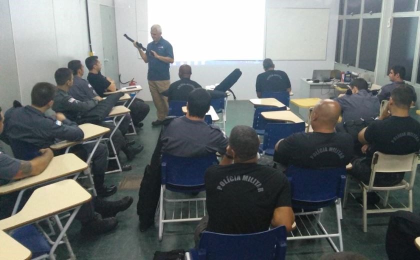 Policiais militares recebem instruções sobre novo armamento adquirido pela PMES