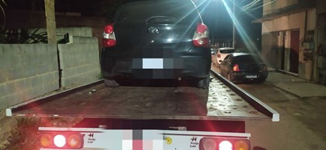 Além do veículo, os policiais apreenderam um simulacro de arma de fogo tipo pistola; uma máquina de cartão de crédito de cor amarela; três aparelhos celulares e duas 02 (duas) facas.