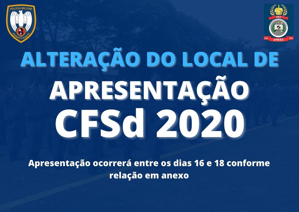 OBSERVAÇÃO: FICA ESTIPULADA A NOVA DATA PARA A APRESENTAÇÃO DOS ALUNOS NA ACADEMIA DE POLÍCIA MILITAR PARA O DIA 23/11/2020, AS 07H.