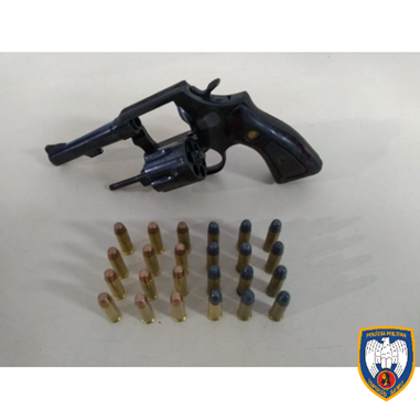 Por volta das 21h30, a equipe da Força Tática recebeu informações via rádio que dois indivíduos teriam invadido uma residência. Quando a guarnição chegou ao local encontrou, no interior da residência os indivíduos, um revólver com seis munições intactas e uma sacola contendo 18 munições.