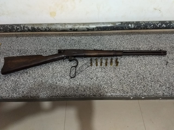 Durante as buscas foi localizado na residência do suspeito, uma carabina, da marca Rossi, calibre 38 e munições. Ele foi detido e encaminhado para a Delegacia de Polícia Civil da cidade.