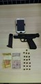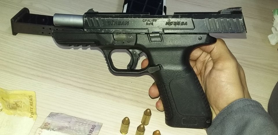 Os militares acompanharam a pé e durante patrulhamento avistaram um segundo homem portando arma de fogo, que tentou se esconder num bar e dispensou o armamento no banheiro. Ele foi detido, e com ele foi apreendida uma pistola calibre 9mm, municiada com 15 munições e mais quatro munições de mesmo calibre sobressalentes. O primeiro suspeito não foi localizado.