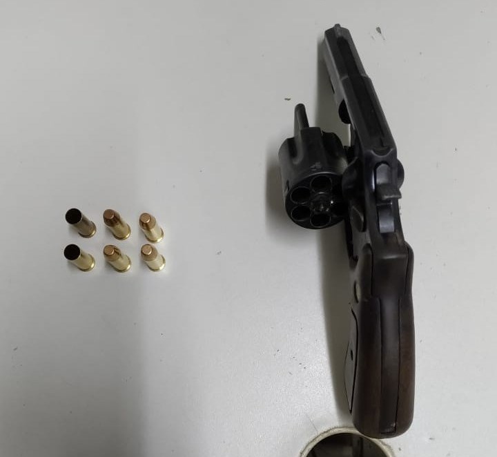 Com a colisão e queda dos dois homens, os militares realizaram uma busca pessoal, sendo encontrado na cintura de um deles um revólver calibre 38 e diversas munições intactas e deflagradas.