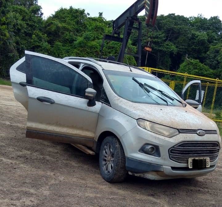 Durante patrulhamento preventivo pelo Balneário de Guriri, após informações de que o veículo Ford/Ecosport, roubado pela manhã, havia seguido sentido Centro de São Mateus pela Rodovia Othovarino Duarte Santos, os militares seguiram na direção informada, visualizando o veículo já na estrada de chão do Rio Preto.