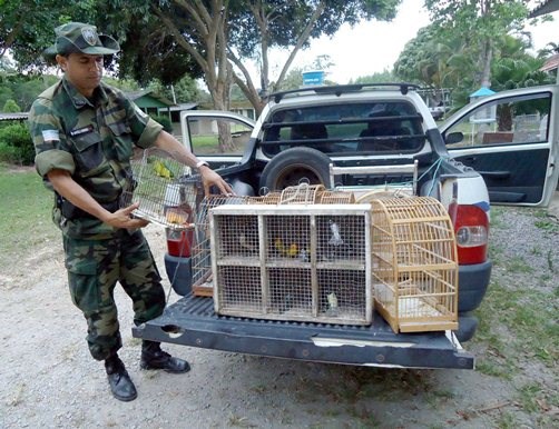 Treze pássaros silvestres foram apreendidos por policiais militares do Batalhão Ambiental, no município de Aracruz. Os animais foram encaminhados ao Projeto Cereias para avaliação, tratamento e posterior soltura em seu habitat natural.
