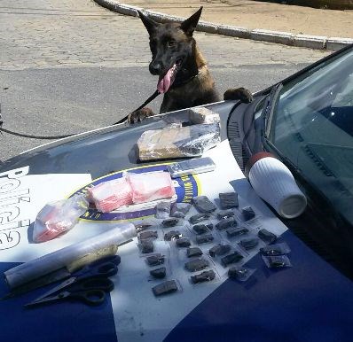 Os militares juntamente com as equipes do 6º Batalhão apreenderam cerca de 1,2 kg de maconha prensada e mais 35 buchas de tamanho médio, além de uma grande quantidade de material para embalo das drogas. A cadela Kira localizou todo o material em uma região de mata nas proximidades do bairro das Laranjeiras. Não houve detidos.