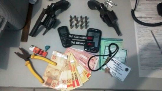 Os Policiais realizaram acompanhamento dos suspeitos e visualizaram quando na Rua Vereador Jonas Orlete, um deles dispensou os dois revolveres. Em seguida os militares conseguiram interceptar os criminosos e apenderam os materiais citados.