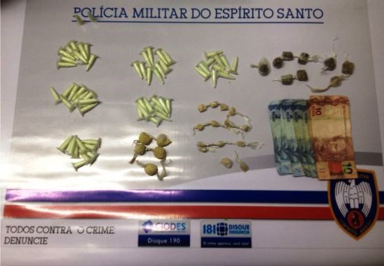 Na manhã de hoje (28), em Tubarão, os policiais abordaram um jovem suspeito e apreenderam em sua posse uma sacola contendo 62 pinos de cocaína, 19 pedras de crack e nove buchas de maconha.
