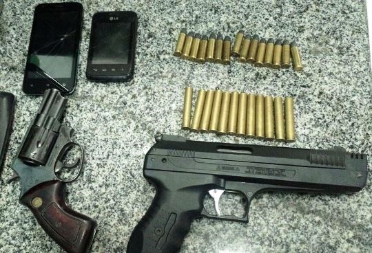 Durante a operação conjunta, foram recuperados um revólver calibre 38 com cinco munições, dez munições calibre 38, 12 munições calibre 36, uma pistola de pressão e uma caixa de chumbo 4.5.