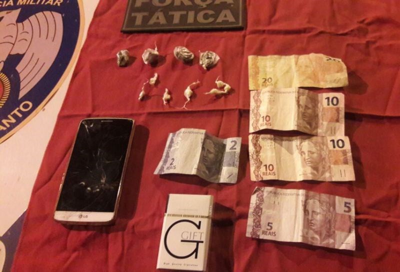 Já na noite de sábado (17), policiais flagraram a atividade de comercialização de entorpecentes no bairro Tamarindo. Um homem e uma mulher foram detidos e um adolescente apreendido. Na ação foram apreendidas também sete pedras de crack, quatro buchas de maconha e R$ 47,00 em espécie.
