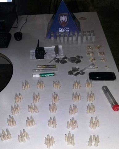 Durante o serviço dessa segunda-feira (25), policiais militares do 1º Batalhão realizavam patrulhamento pelo Morro de Santa Helena, quando avistaram suspeitos na Escadaria José Tosta comercializando entorpecentes. Com a aproximação da guarnição, eles fugiram. Na fuga abandonaram no local, 37 pedras de crack, 20 frascos de loló, 16 buchas de maconha, três frascos de lança-perfume, um rádio comunicador e um aparelho de celular.