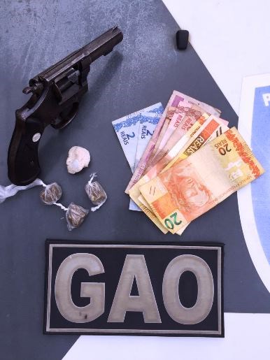 Após receberem informações da esposa do suspeito, a equipe deslocou até a residência do casal, e autorizados por eles iniciaram buscas no imóvel. Os policiais encontraram no interior de um pote um revólver calibre 32.