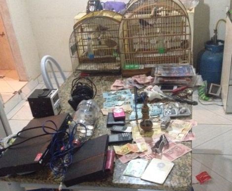 O mandado foi cumprido na manhã dessa quarta-feira (08) pelos policiais militares do 13° Batalhão e policiais civis, na casa de K.S.S., de 18 anos. Na residência do suspeito foram apreendidos R$ 1326,25, joias, três buchas de maconha, uma quantidade de cocaína, uma balança de precisão, uma televisão, quatro aves da fauna brasileira sem licença e outros objetos.